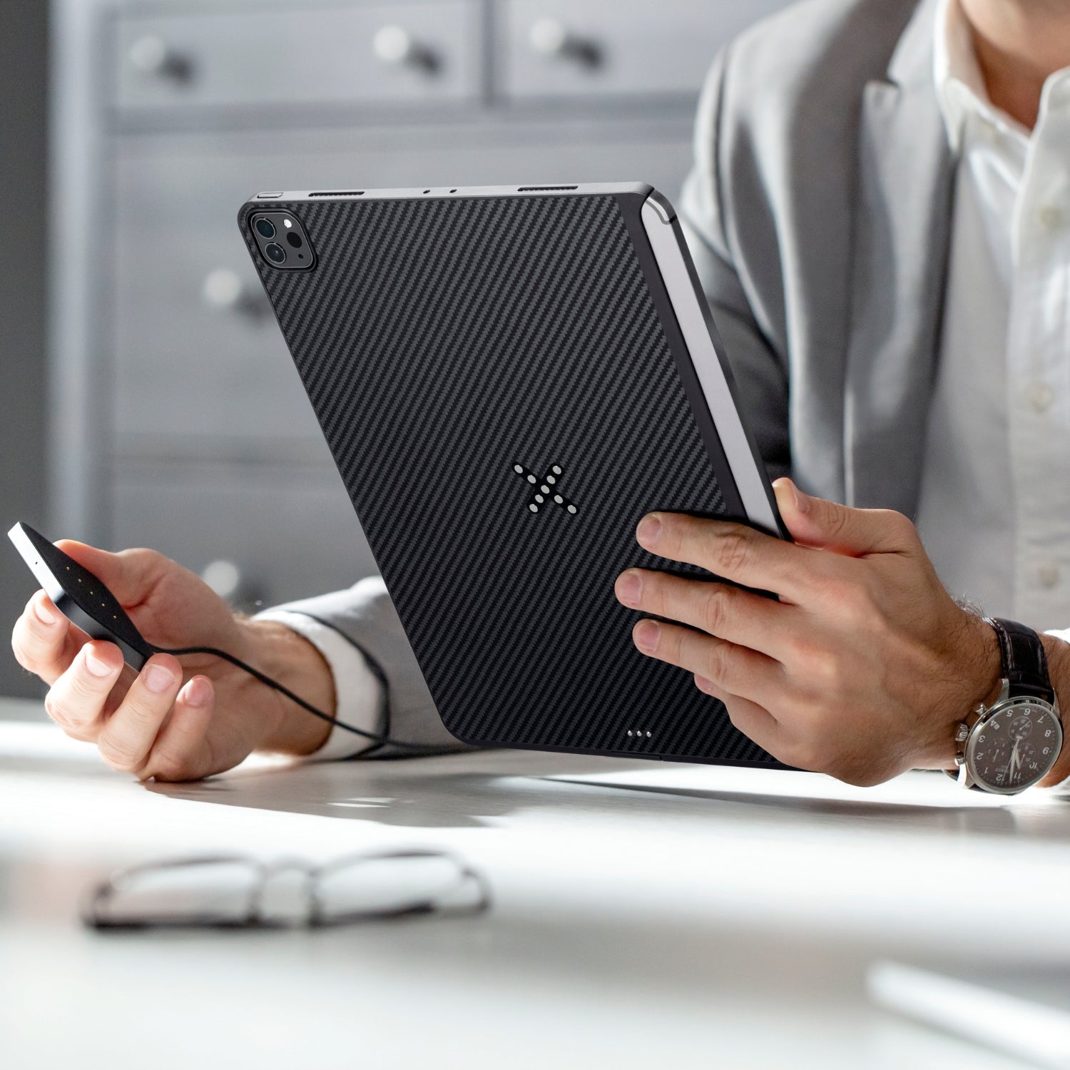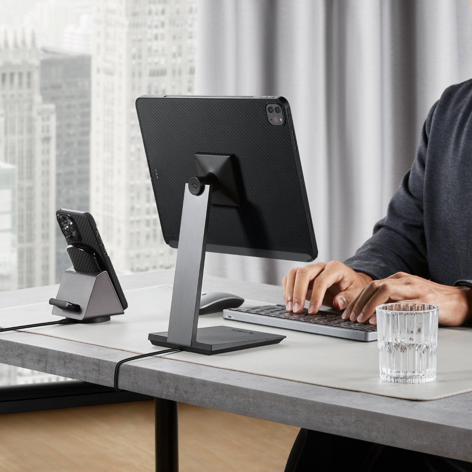 Descubre Pitaka Flow, el exclusivo sistema de carga inalámbrica para iPad. Simplemente coloca tu dispositivo y manténlo siempre cargado mientras trabajas o te relajas.